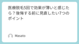 - 5〜8回目:目に見えて毛が薄くなり、ツルツル感が増す。